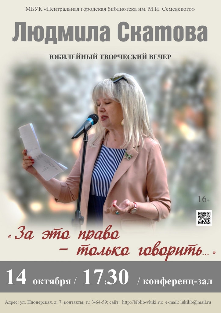 в Центральной городской библиотеке им. М.И. Семевского, состоится юбилейный творческий вечер известного российского поэта, литературоведа, публициста, члена Союза писателей России, Заслуженного работника СМИ Псковской области